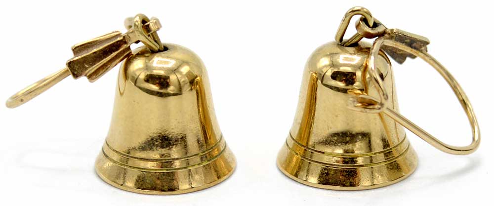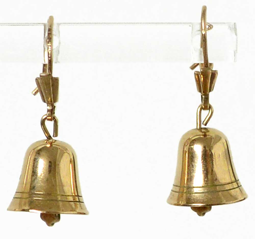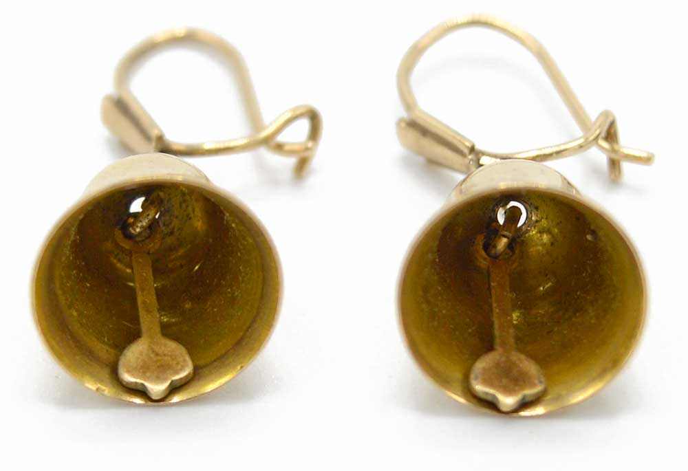 Small drop gold bell 9 karat earrings. Fully hallmarked for W. H. Collins, Birmingham and probably 1930s, as they are marked with the date letter "E".