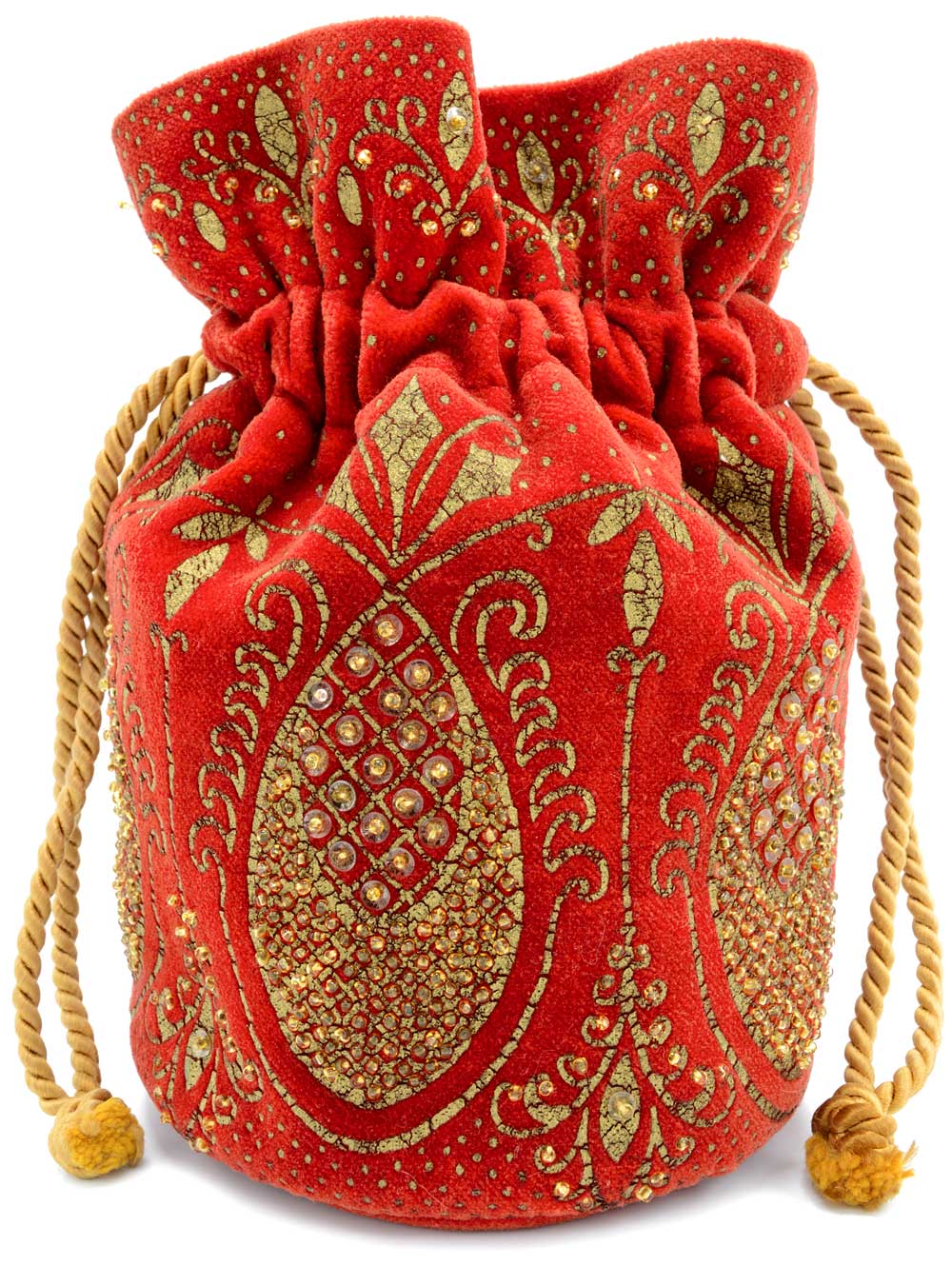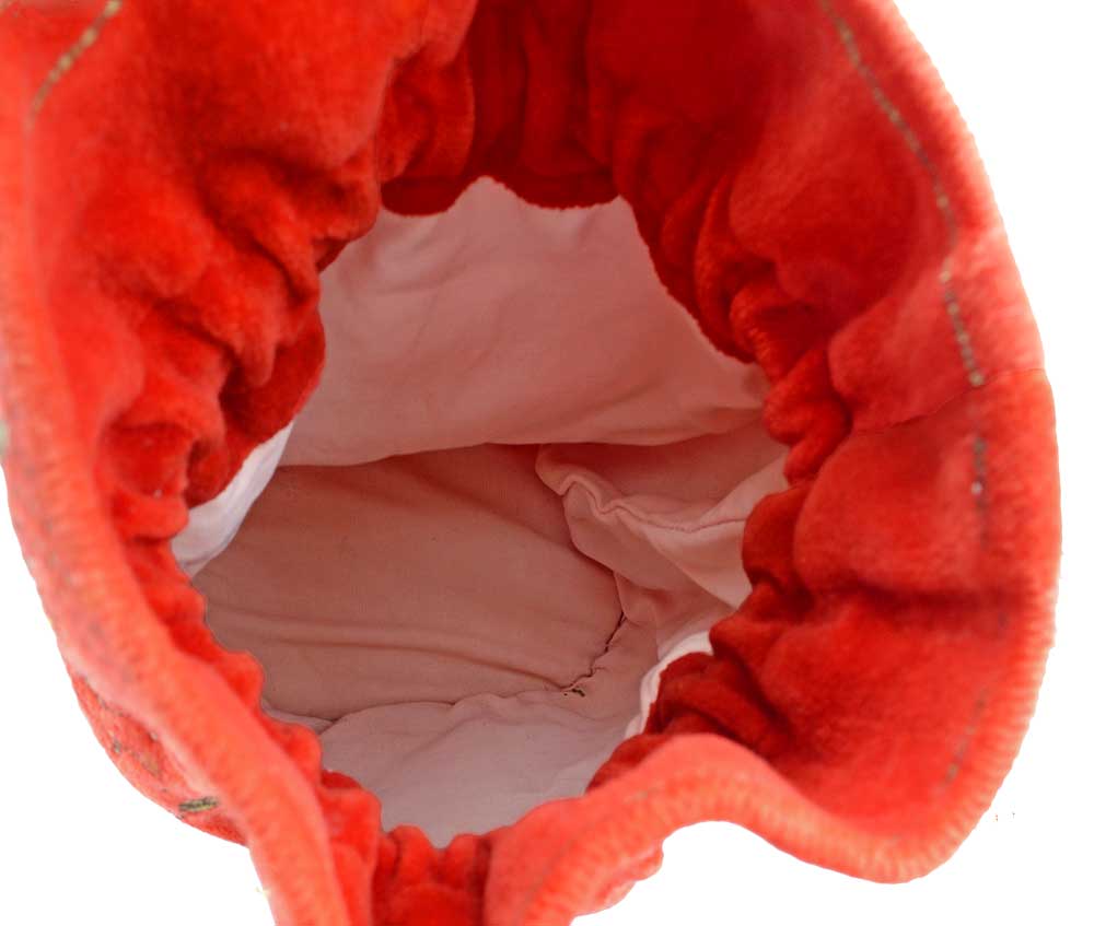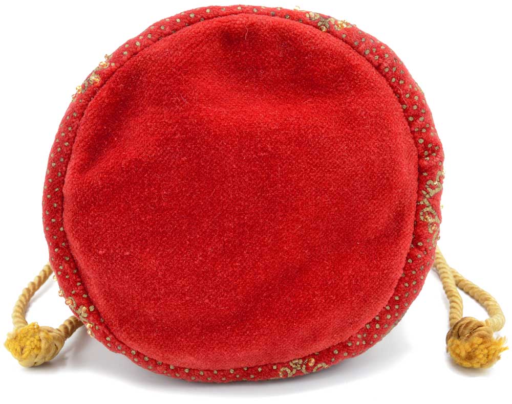 Red velvet drawstring evening bag. Used in The Bohemian Cats Theatre Tarot.
