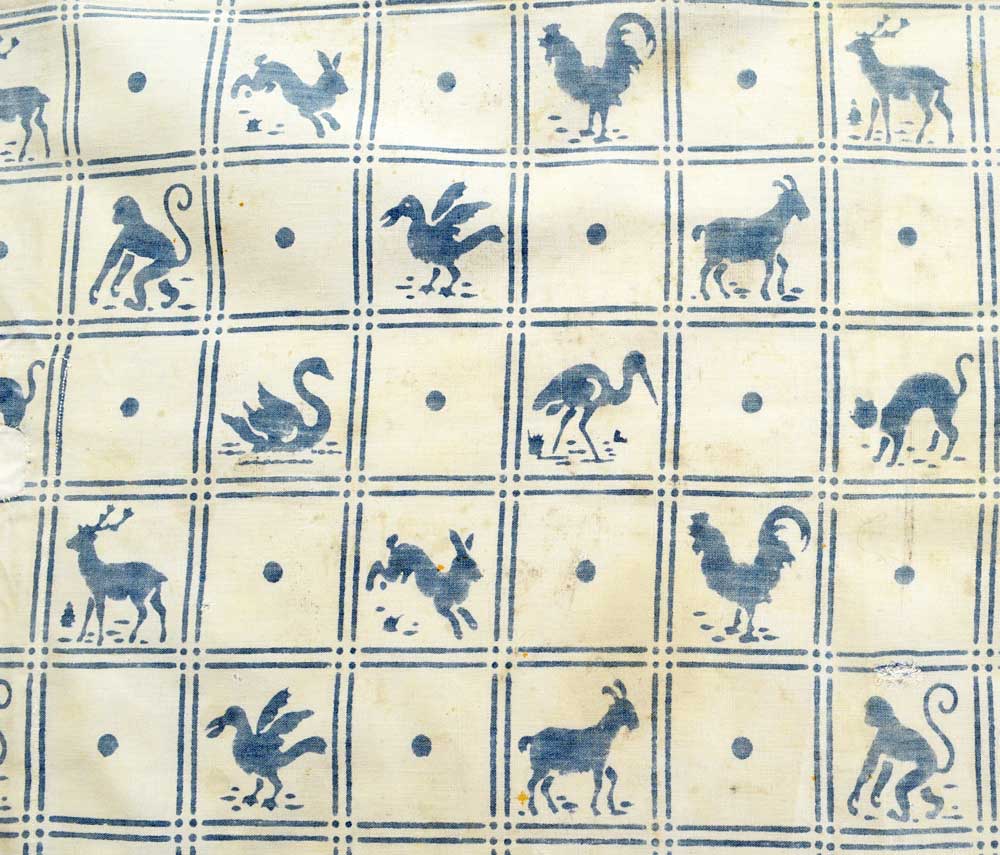 Large vintage / antique folk cotton textile cloth. Charming animal print.