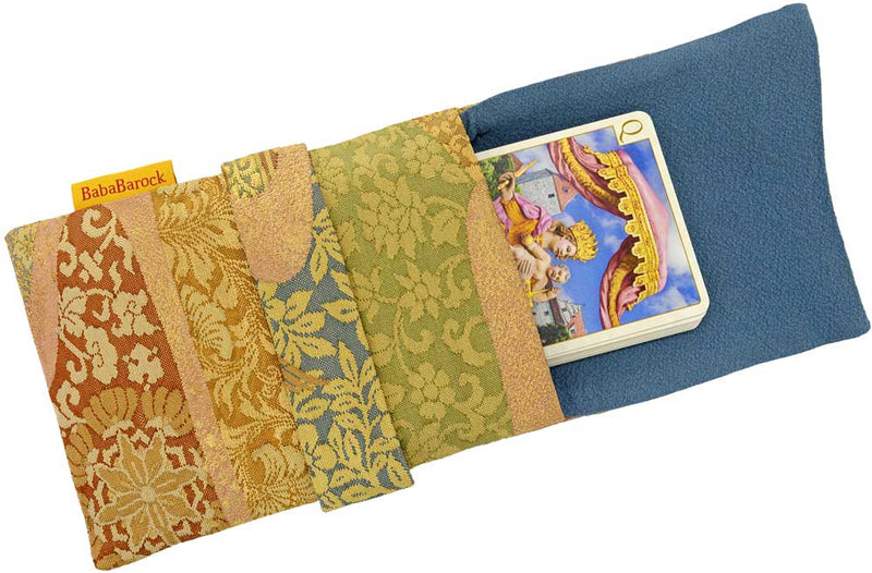 Cut from a vintage silk Japanese obi belt, this tarot bag has lots of metallic threads that give this bag a wonderful shimmer.